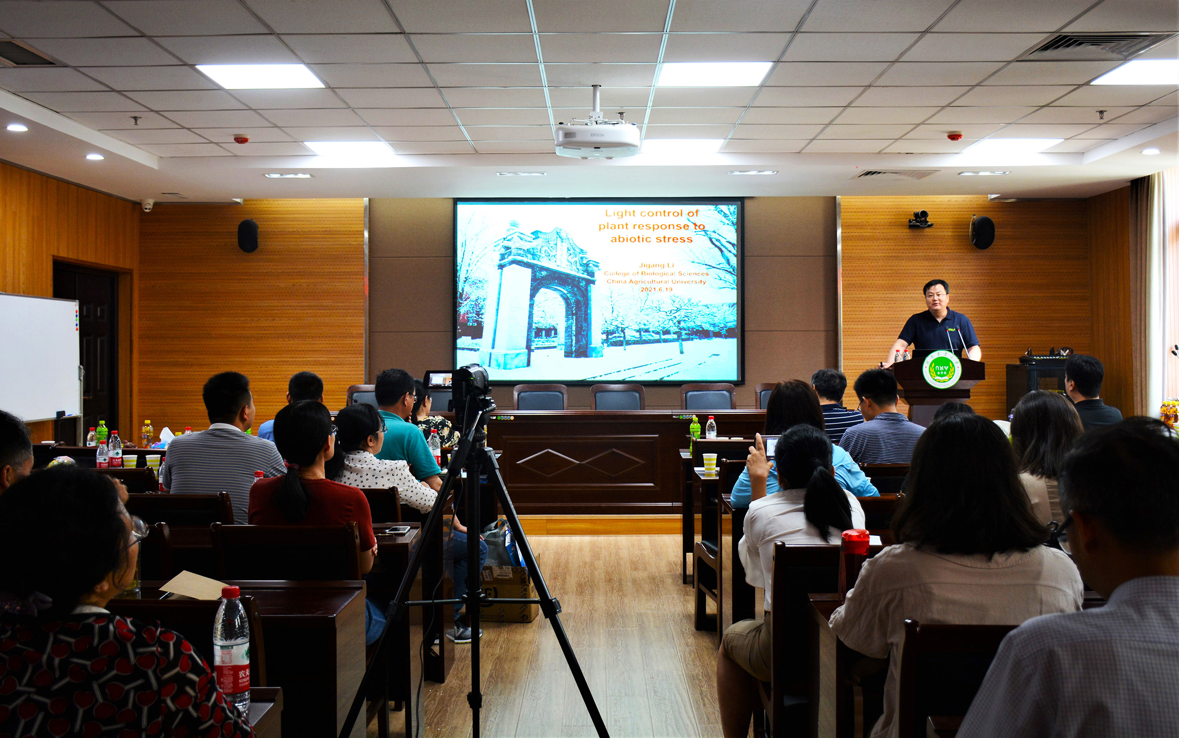 中国农业大学李继刚教授以“光调控植物逆境响应的分子机制”为题,介绍了光和低温信号、光和ABA信号的互作机制,阐述了光和低温信号互作途径的关键转录因子PFS和CBFS之间的密切调控关系,揭示了在黑暗下调控植物ABA信号途径的组分和机制。