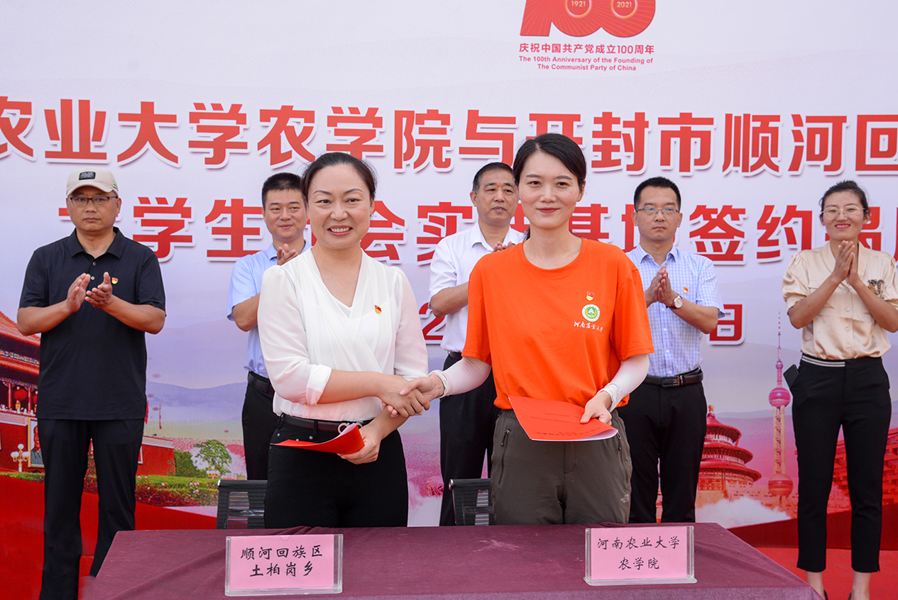 此次活动以我校“百名教授、千名学生”助力乡村振兴暨大学生暑期“三下乡”社会实践活动为契机,在顺河回族区土柏岗乡成立猫都论坛 大学生社会实践基地。本次政校合作签约具有良好的示范和带动效应,旨为更好实现双方资源共享互补,培养和提高学生实习实践能力,推进学子知行合一、学以致用,使知识理论不断转化为推动“三农”发展,促进乡村振兴的强大动力。下一步,学院也必将进一步构建更加开放、更加多元的实践育人新模式,包括建立联合试验基地等,让学生积极深层次地参与到社区建设过程中,探索形成政府、学校、学生三方互惠联动合作机制。