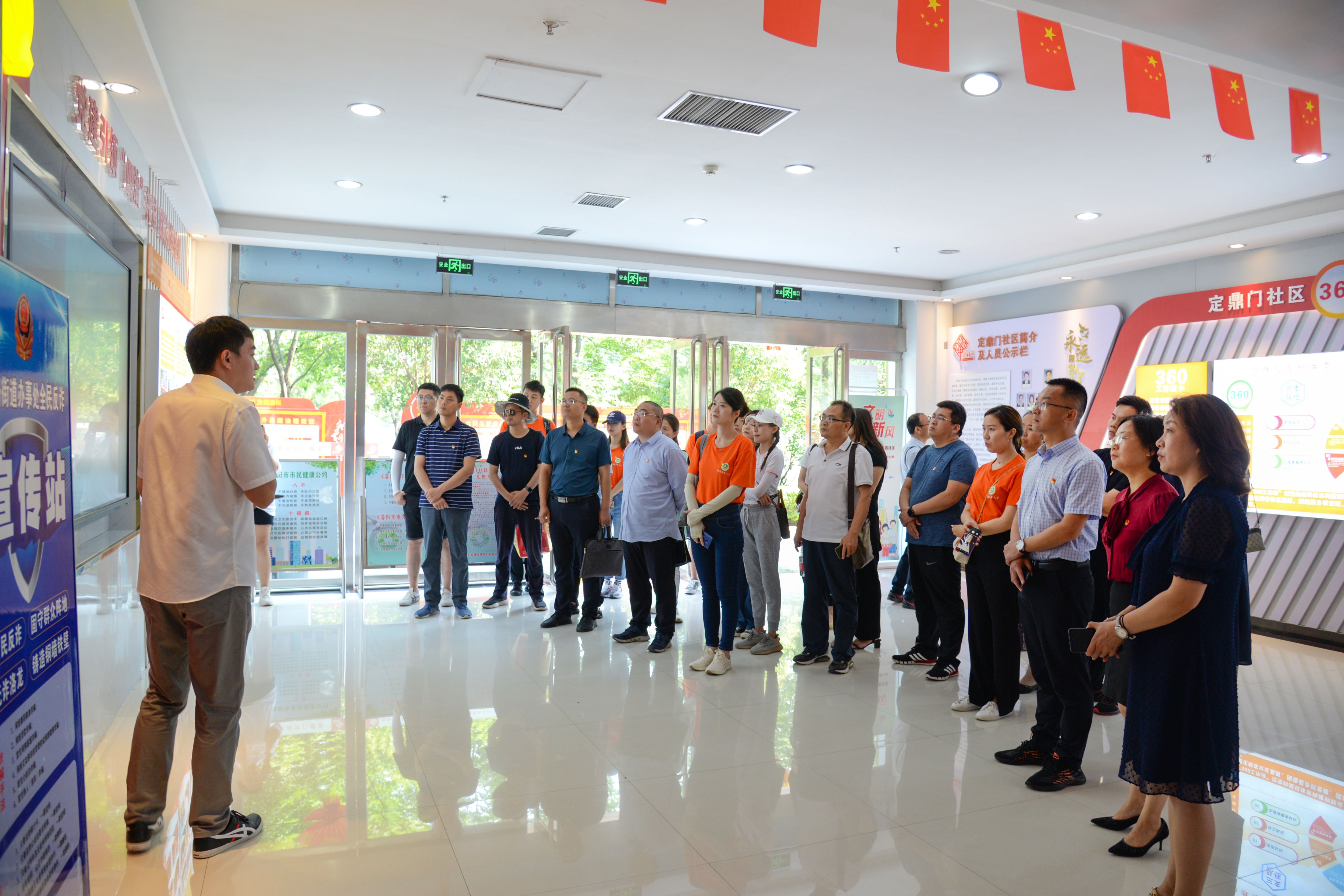 与会党员参观了定鼎门社区便民服务大厅、党员之家等活动阵地。赵春阳介绍了定鼎门社区党建工作的开展情况及党建工作成效。