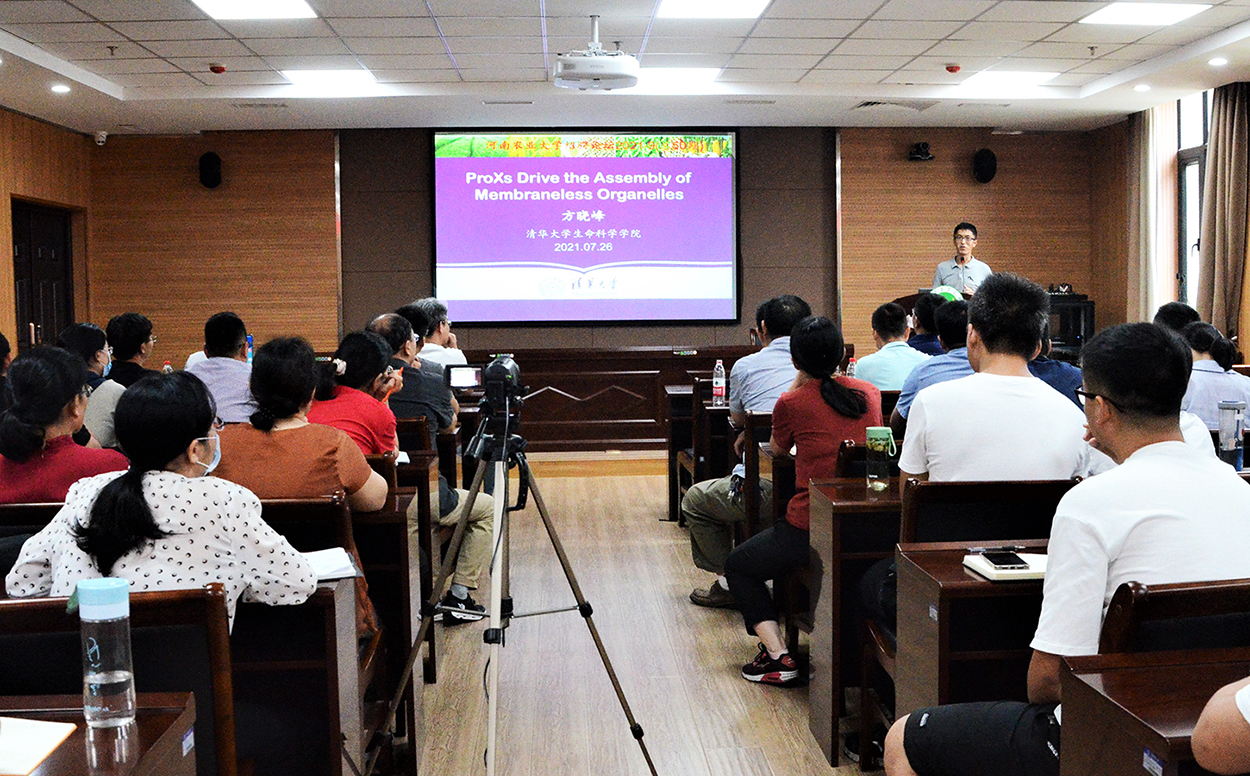 方晓峰研究员以“ProXs drive the formation of membraneless organelles in plants”为题,介绍了拟南芥体内RNA和蛋白质通过相分离调节植物体生长发育和胁迫响应的机制。