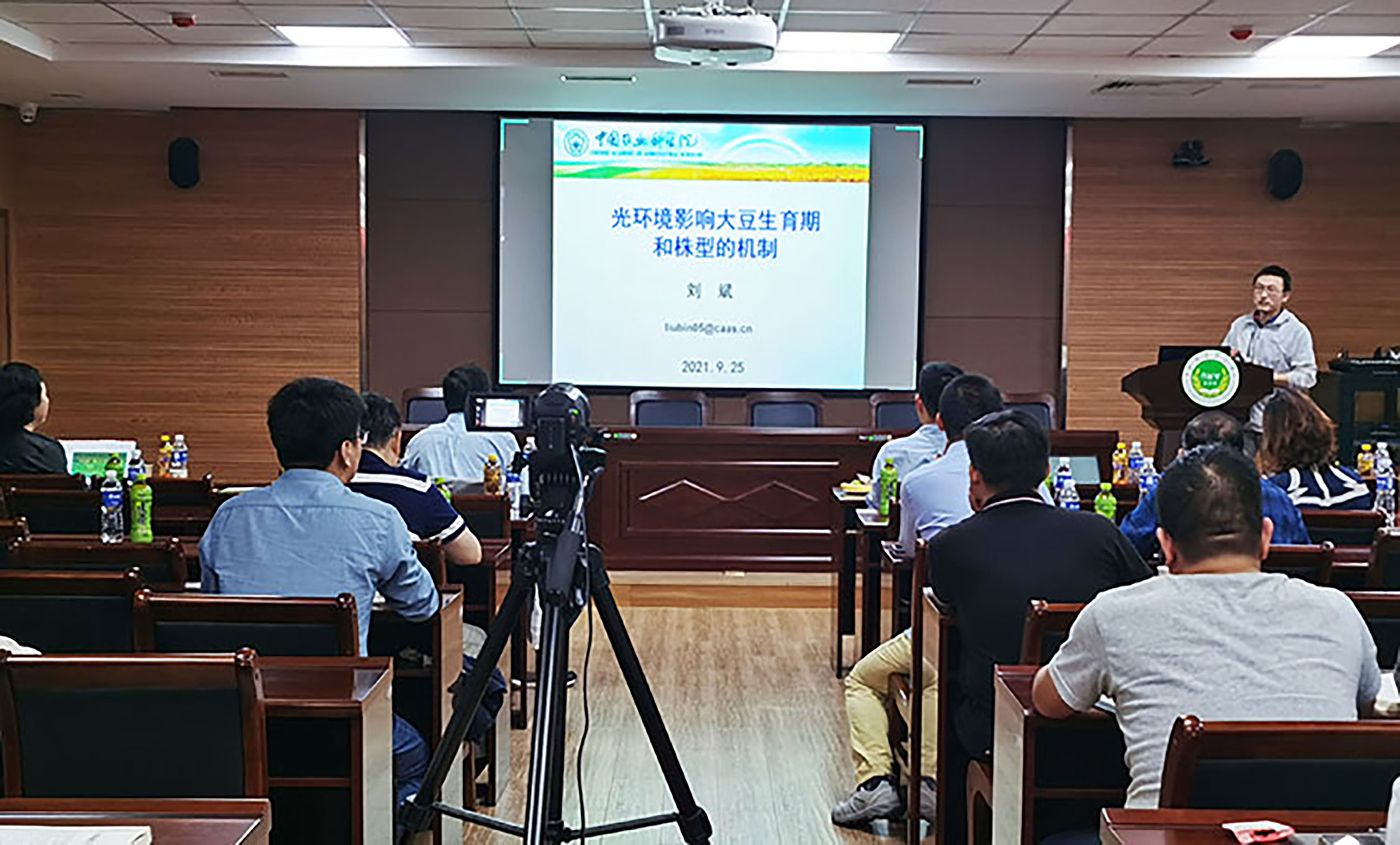 刘斌研究员以“光环境影响大豆生育期和株型的机制”为题,介绍了光环境变化对大豆的生育期、株型和品质的影响,通过正向和反向遗传学手段探讨了光环境影响大豆生育期和形态建成分子机制,为利用光信号通路相关基因培育广适、高产、耐密新品种提供了参考思路。