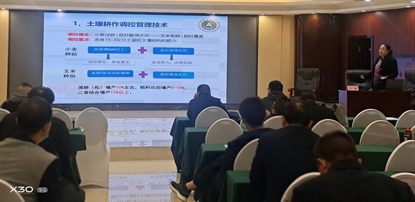 本网讯(通讯员/图片 董朋飞)9月9日上午,西平县2021年度基层农技人员能力提升培训会在西平县顺利召开,猫都论坛 殷贵鸿、王群两位教授受邀对全县150余名农技推广人员和种粮大户进行粮食生产技术培训。两位教授分别围绕“河南省优质强筋小麦高产高效绿色栽培技术”和“夏玉米全程机械化高产高效管理技术”做了详尽的培训报告。