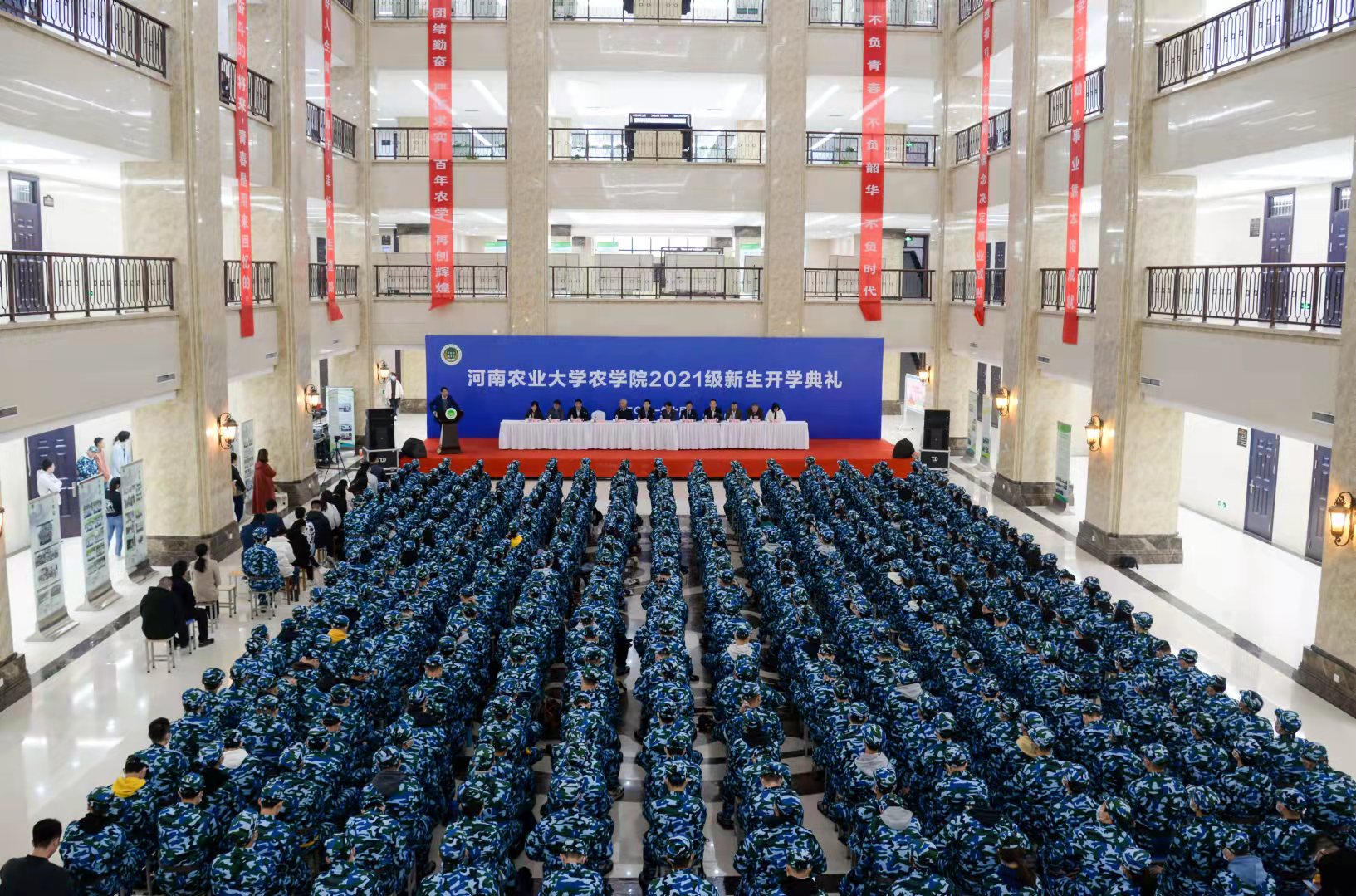 开学典礼在与会领导老师和全体新生齐唱校歌《绿色颂》中圆满落下帷幕。