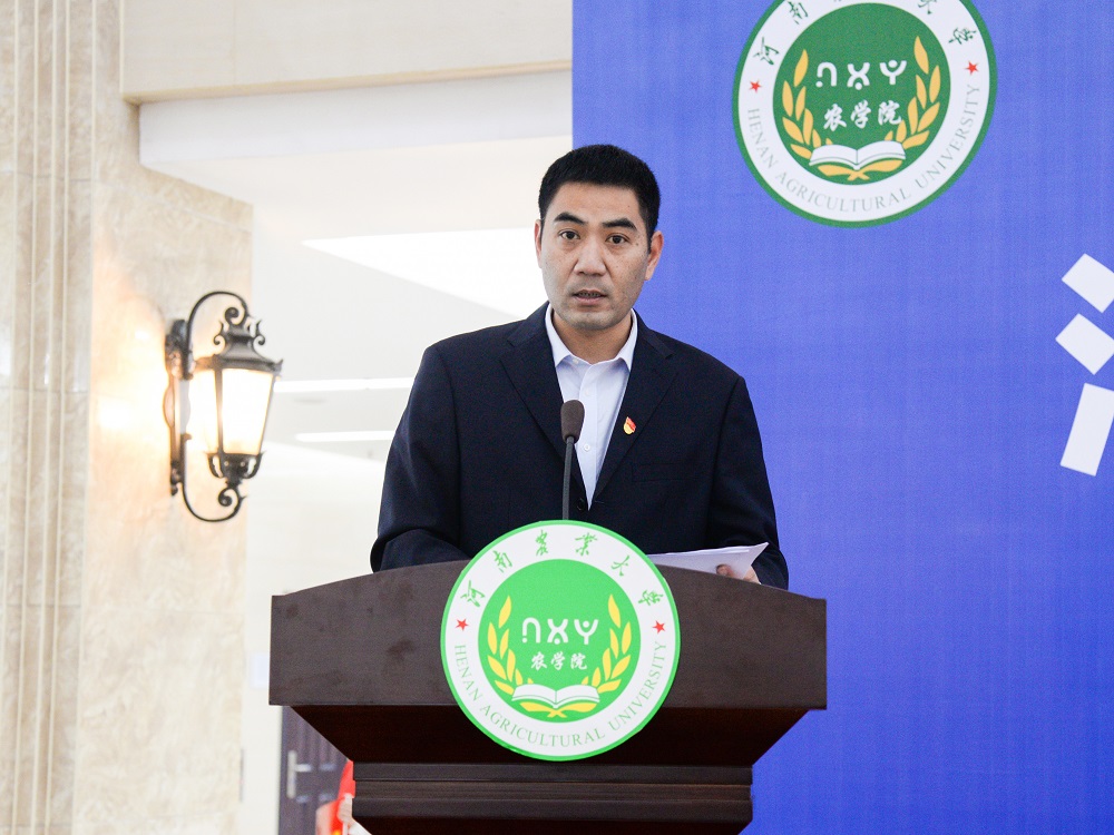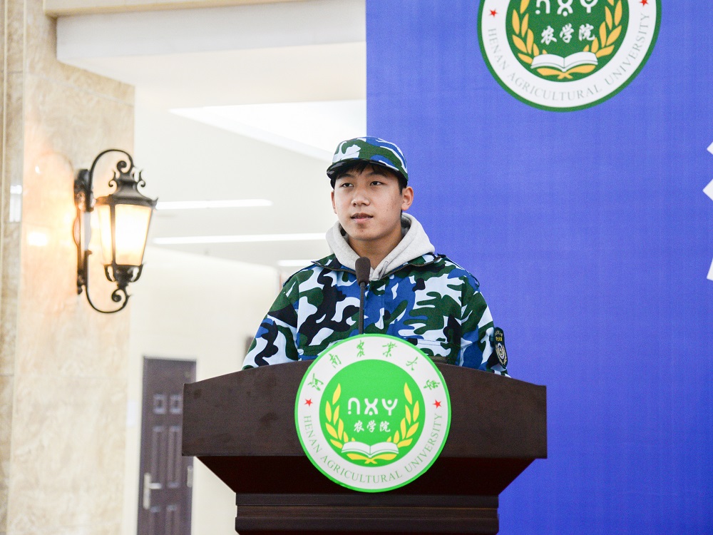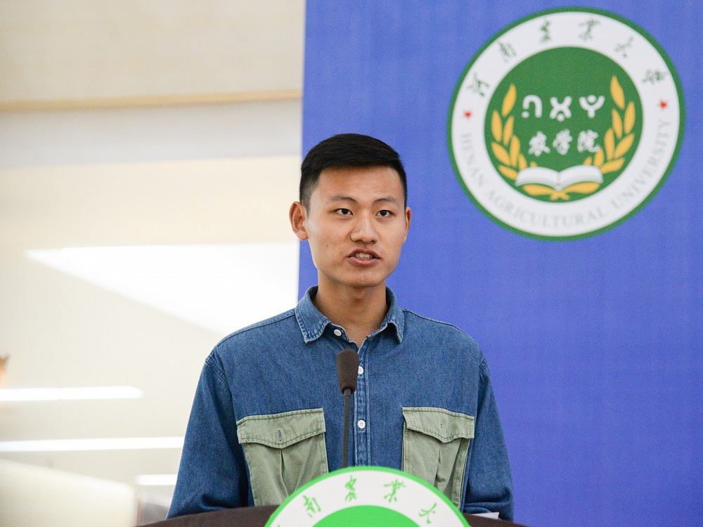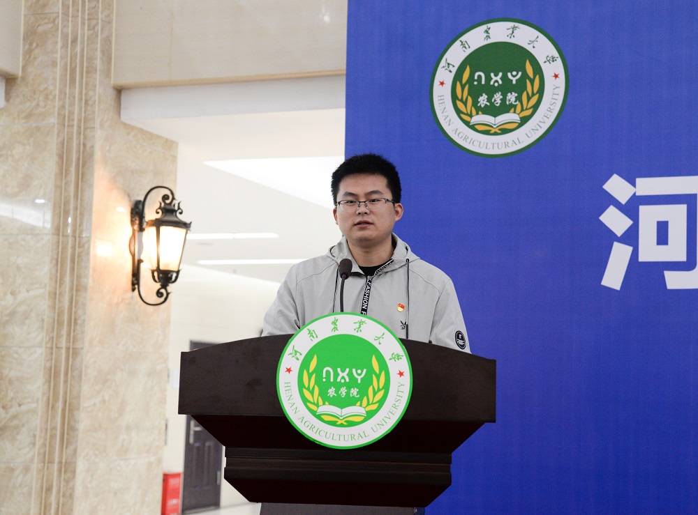 研究生代表、2019级作物学专业博士研究生李俊畅同学发言。他向同学们发出倡议,要真心热爱、内心强大;要学有余力、积极实践;要具有家国情怀,努力做弘农爱国的农大人。