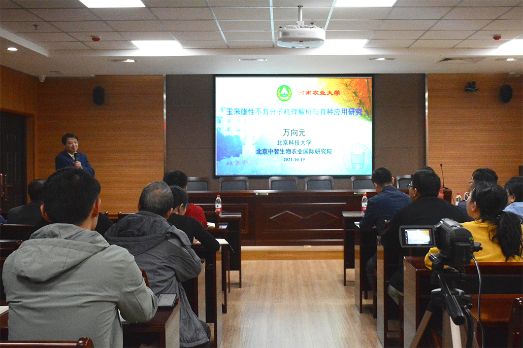 万向元教授以“玉米雄性不育分子机理解析与育种应用研究”为题,首先简要介绍了目前玉米杂交种生产存在的问题;接着介绍了团队在玉米雄性不育突变体批量化创制,不育基因克隆与机理解析,不育技术系统分子设计等三个方面的研究进展;最后,提出了“在后杂种利用优势时代有望利用显性核不育技术提高作物籽粒产量”新观点,为解决我国玉米种业“卡脖子"问题提供理论依据。