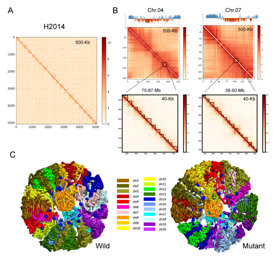 殷冬梅教授团队在国际基因组学顶级期刊《Genome Biology》(5Y IF 17.433)发表了题为“Chromatin spatial organization of wild type and mutant peanuts reveals high-resolution genomic architecture and interaction alterations”的研究论文。该研究首次绘制了花生三维基因组(Three-dimensional (3D) chromatin organization)图谱,综合Hi-C、ATAC-seq、多组织表达谱联合分析和3C等实验揭示了染色质空间结构特征及其对花生株型的影响。该研究拓展了人们对花生3D基因组与基因调控之间关系的理解,促进了花生功能基因组学研究,为开展花生遗传改良和种质创制提供了重要的理论创新与技术支撑。