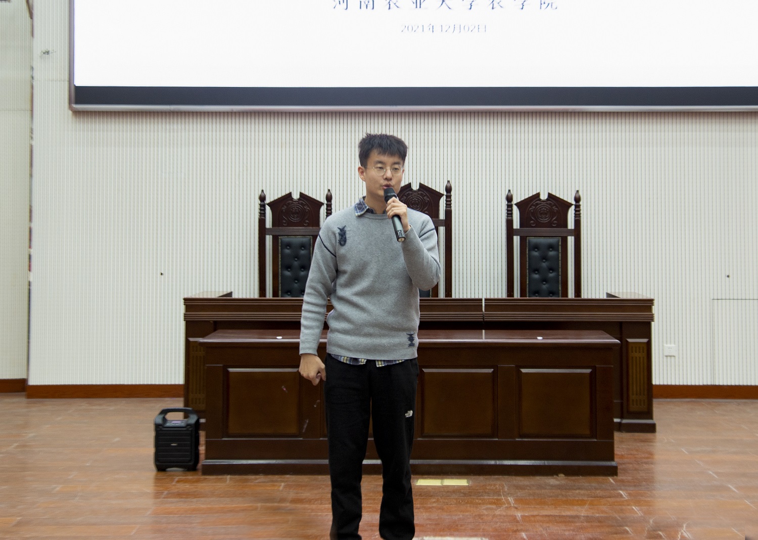 弘农杯“金语良言,融思汇智”辩论赛决赛于龙子湖校区繁塔楼AB间大教室三模拟法庭如期举行,目的旨在引导大学生锤炼品格、塑造品行、涵养品位。此次比赛由院学生会学实部承办,院团委老师唐朝、学生会相关负责人担任评委,2021级学生积极踊跃报名参赛。