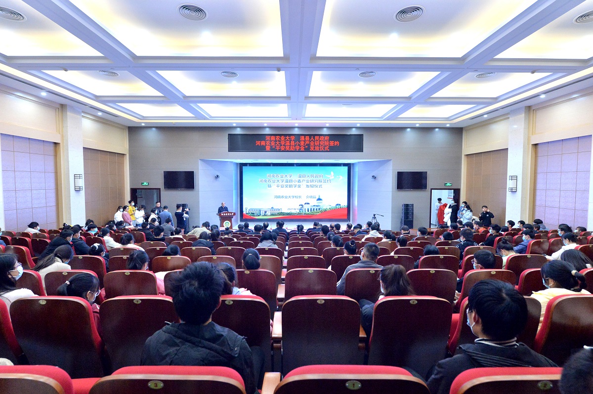 介晓磊讲话。他指出,河南平安种业有限公司在我校设立“平安奖助学金”充分体现了平安种业作为农业领域的优秀企业代表的社会责任担当与“三农”情怀。他表示,学校将用好“平安奖助学金”,提高人才培养质量,为社会培养更多优秀的农业科技人才。他勉励获奖的同学们,要立足新时代,把对远大理想的向往与追求转化为实际行动,把握机遇、勤奋学习,努力做有知识、有涵养、有品德、有魅力、有抱负、有能力的时代青年。
