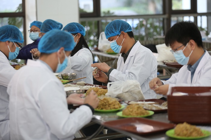 40多名教师用小麦科技创新团队研发的新品强筋小麦“豫农808”面粉亲手所包的饺子,配上美味的菜肴,师生们吃得津津有味,赞不绝口,直呼美味又营养,并对这样的贴心福利表示暖心又感动。