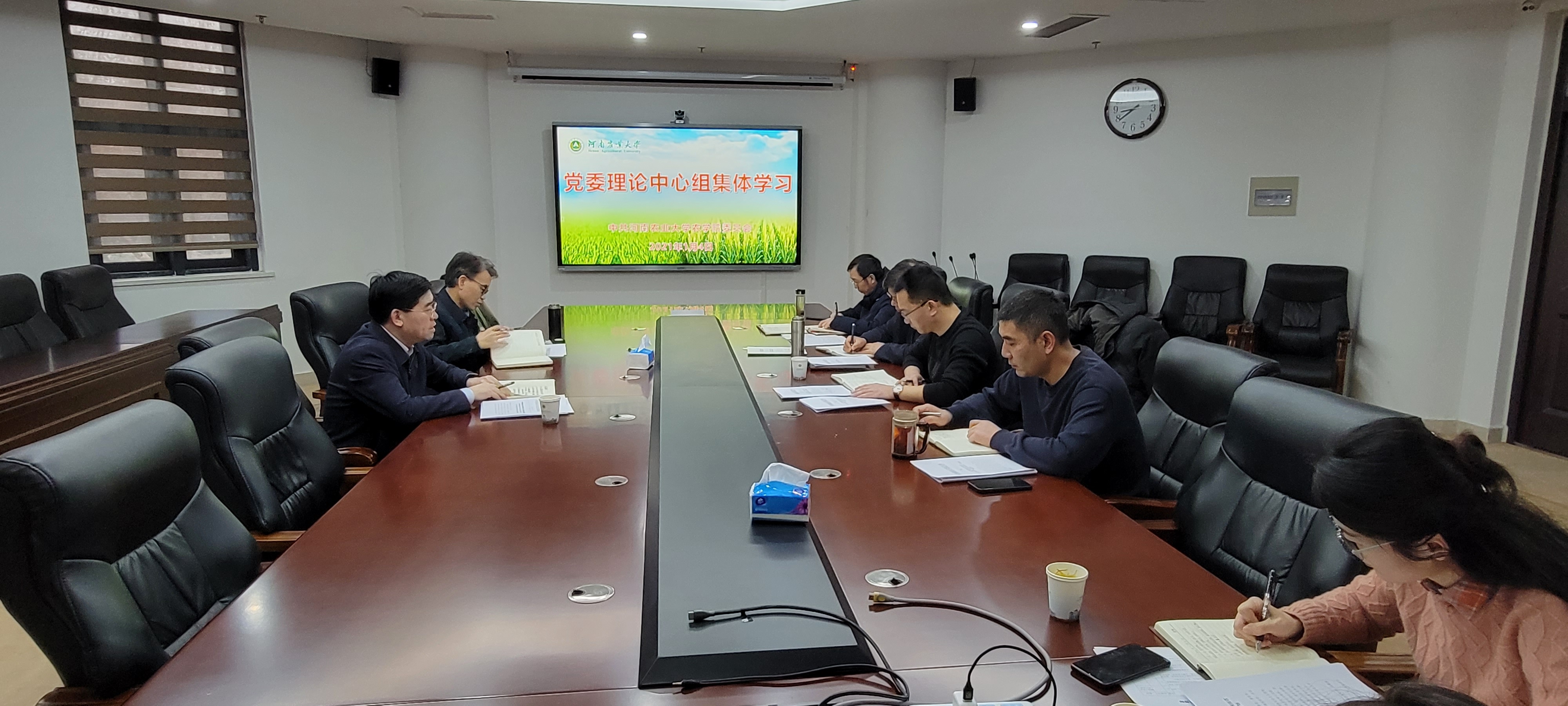 本网讯(通讯员/刘银银)1月4日上午,院党委理论学习中心组在第一实验楼南201会议室召开集体学习会议。全体院领导班子成员参加会议,会议由校党委委员、院党委书记郭战伟主持。