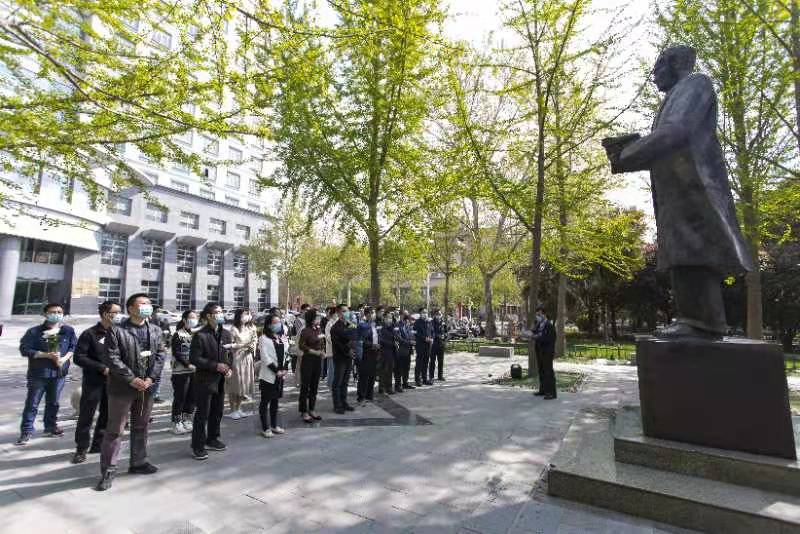 李浩川简要介绍了吴绍骙先生的基本情况和事迹。参加活动的师生依次向吴老铜像敬献鲜花、鞠躬、默哀,表达对吴老的深深思念与缅怀之情。