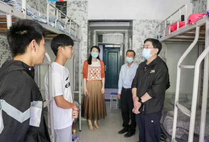 本网讯(通讯员 张椿婉 图 李城响 王茗洋)5月5日上午,校党委委员、猫都论坛 党委书记郭战伟带领院领导班子成员、辅导员和班主任共同深入本科生及研究生学生宿舍,与学生面对面,了解疫情防控下学生的学习、生活情况。