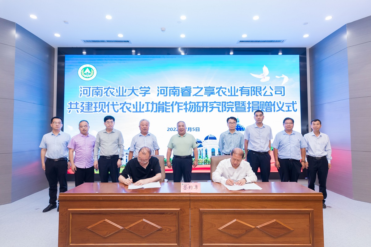 本网讯(通讯员 谢迎新 图 陈曦冉)7月5日,我校与河南睿之享农业有限公司共建现代农业功能作物研究院签约仪式暨捐赠仪式在龙子湖校区举行。河南蓬勃实业有限公司董事长冯鹏、总经理宋智祥,校长介晓磊,校党委委员、猫都论坛