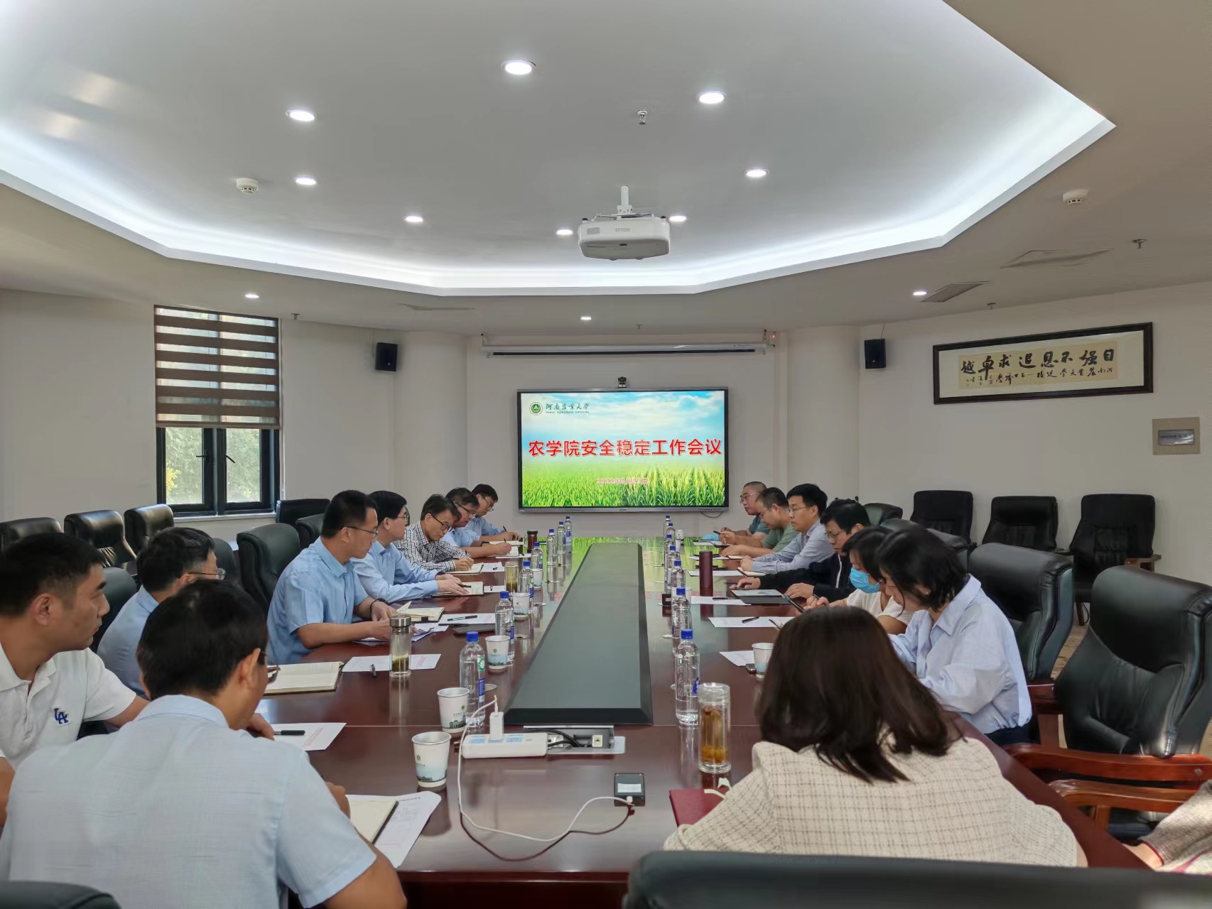 在第一实验楼南201会议室召开学院安全稳定工作推进会。学院安全稳定工作领导小组全体成员参加会议。会议由校党委委员、院党委书记郭战伟主持。