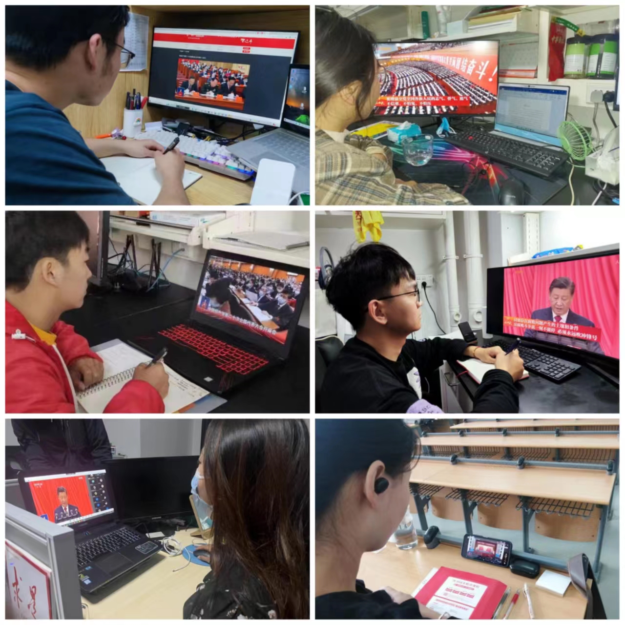 在第一实验楼南321会议室,学院组织部分学生党员代表集体收看开幕会,会场掌声连连,为十九大以来党中央带领全国各族人民取得的成绩感到骄傲自豪,为二十大描绘的新蓝图和美好未来感到欢欣鼓舞。