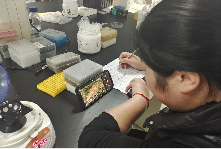 图为组织委员高闯在参加线上会议时,认真做好会议笔记