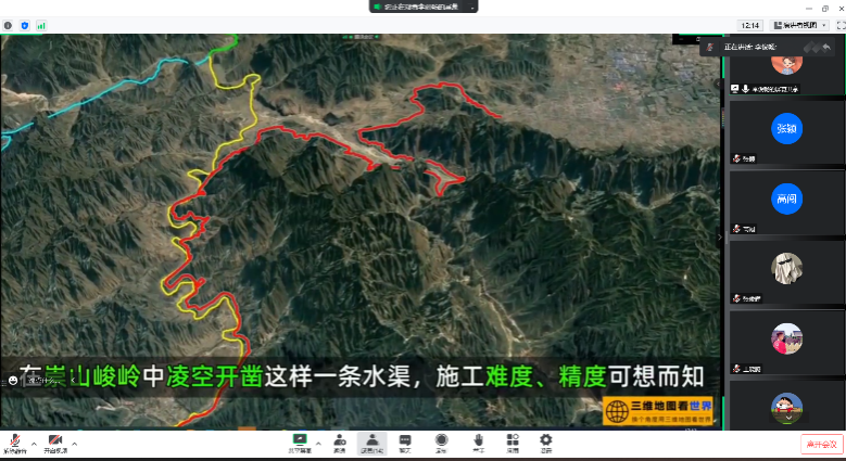 图为支部成员召开线上会议,交流学习红旗渠精神