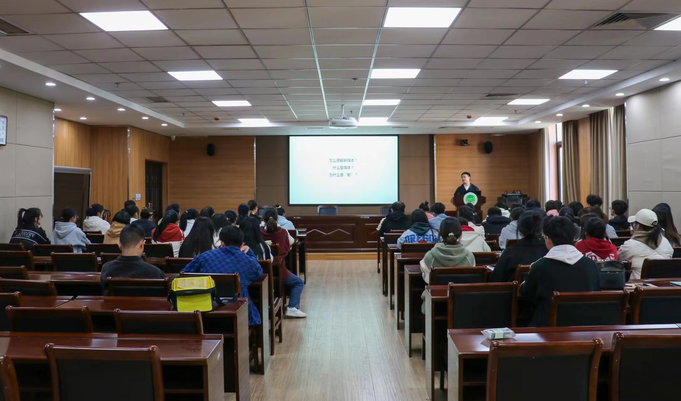 培训开始,郭柄辛首先以“怎么理解新媒体”为切入点展开叙述,从新媒体的历程、未来新媒体的趋势以及新媒体的运营方式三方面层层展开。就校园新闻写作技巧,单反相机参数及拍照构图两个方面对新媒体工作进行详细剖析。他凭借多年积累的工作经验,结合详实的事例,对新媒体常见以及典型错误进行深入讲解,帮助同学们查缺补漏,以便在以后的工作中减少错误发生。培训期间,同学们注意力高度集中,认真听讲,积极配合,并及时记录培训中的重点,便于日后学习与回顾。