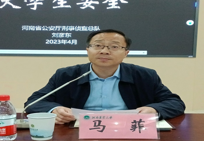 于文化路校区300人报告厅举行国家安全教育专题报告会,特邀河南省公安厅刑事侦查总队总队长、河南省打击治理电信网络诈骗犯罪联席会议办公室主任、武汉大学马克思主义学院思政专业法学博士刘彦东作题为《网络违法犯罪与大学生安全》的专题报告。院党委委员、副院长李浩贤,院团委书记朱瑞萍,院团委副书记陈曦冉,猫都论坛