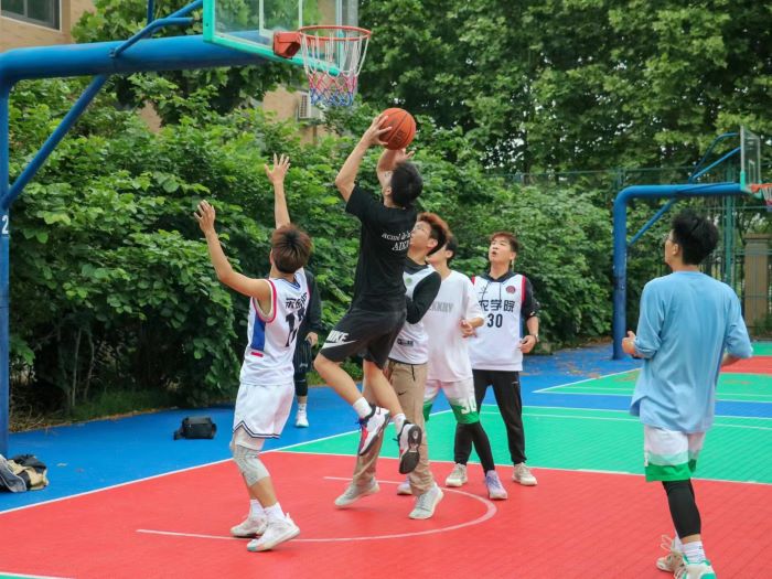 于龙子湖校区体育馆篮球场举办以“青春热血'篮'不住,扬帆逐梦双一流”为主题的毕业生师生篮球友谊赛。本次篮球赛由院社团部和院篮球协会负责组织和裁判。