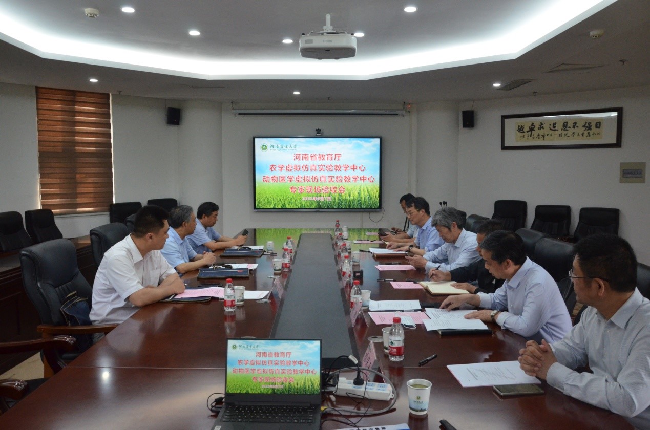 牵头建设的省级农学虚拟仿真实验教学中心进行实地考察和现场验收。会议由教务处赵鹏处长主持,杨喜田副校长代表学校致欢迎词,并简要介绍了虚拟仿真实验教学中心的建设;专家组组长河南中医药大学徐江雁副校长介绍了省级虚拟仿真实验教学中心建设的重要性,并提出了验收的标准在于项目的建设和推广应用潜力;学术副校长、农学虚拟仿真实验教学中心主任汤继华汇报了农学虚拟仿真实验教学中心的建设成效。随后专家组到第一实验楼农学虚拟仿真实验教学中心进行实地验收,考察了硬件设施、实验平台的建设情况,并查看了项目的运行情况。