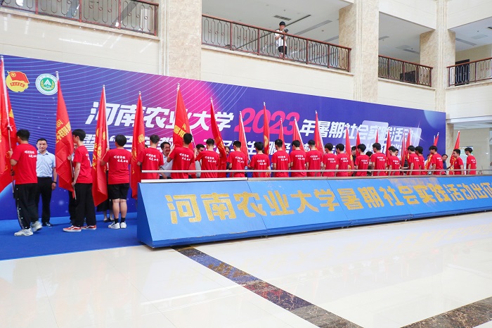 承办的学校2023年暑期社会实践活动暨“百名教授 千名学生 服务万村”专项行动出征仪式在龙子湖校区第一实验楼隆重举行。校党委副书记游舸宣布活动开幕并主持出征仪式。