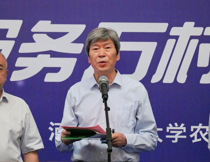教授谢迎新,资源与环境学院研究生、我校兰考科技小院负责人许宇蒙分别代表指导教师和实践学生发言。他们在发言中表示,将在此次社会实践中践行弘农爱国的农大精神,用扎实的专业知识描绘乡村振兴“新图景”,交出实干“好答卷”,用自身所学回报祖国和人民,为建设社会主义现代化强国贡献力量。