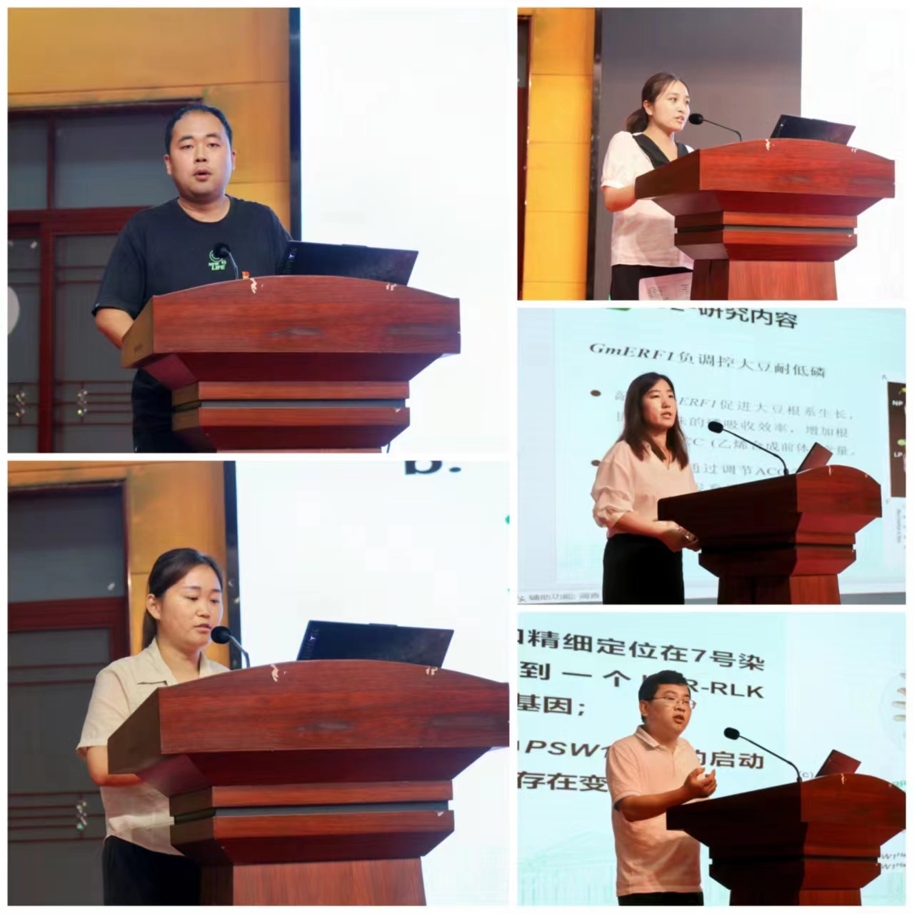 专题报告后,邱鼎、胡丹丹、赵亚帆、杨慧丽、董纯豪等5位青年教师代表分别围绕花生荚果大小调控基因鉴定与机制研究、大豆耐低磷关键基因的挖掘与功能研究、miR167-OsARF12 作为 miR159 下游调节水稻籽粒灌浆充实作用机理、玉米 CMS-C 线粒体不育基因 atp6c 的分子机制解析、小麦分蘖调控基因 TN1 的图位克隆与功能研究等作学术交流报告,交流报告中现场互动不断,与会专家教师从研究方向、研究方法、结果呈现、成果转化和团队建设等方面进行提问交流,有效推动青年教师将学术发展与职业规划融入学院事业发展大局。
