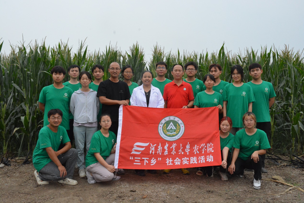 王群教授、宋睿老师和贾绪存老师的带领下,“金玉”实践团一行于2023年8月22日来到河南省驻马店市西平县二郎镇张尧村开展为期三天的“三下乡”实践活动,此次活动主要任务是指导种粮大户和农民群众应对南方锈病和秋作物后期“一喷多促”技术。通过实地调研并给予意见,现场答疑种粮大户与农民朋友在实际运用该技术中遇到得的问题与疑惑。