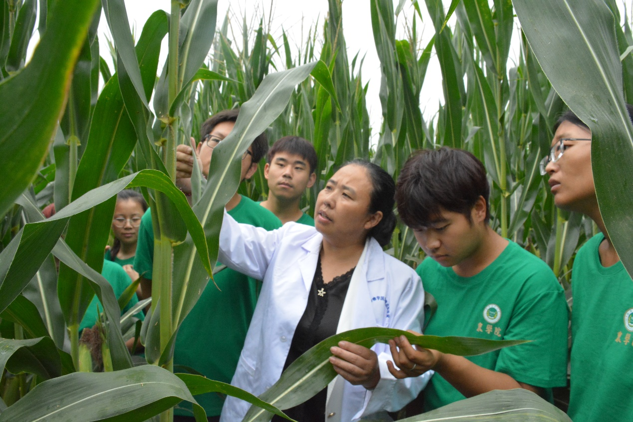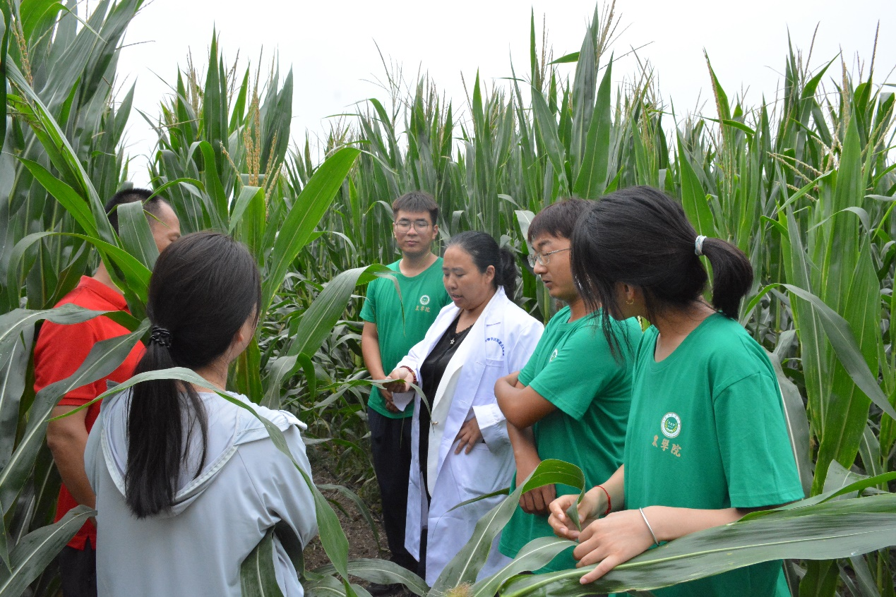 王群教授与实践团成员调查田间玉米病害