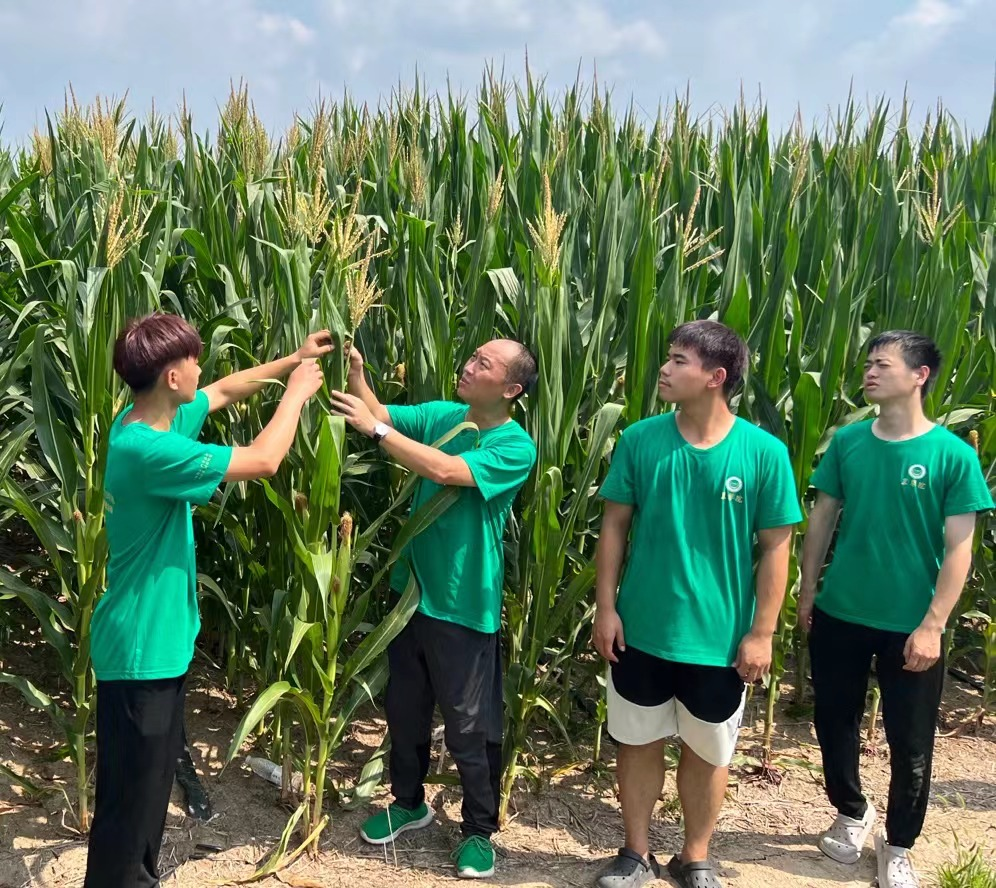 王群教授与实践团成员调查田间玉米长势