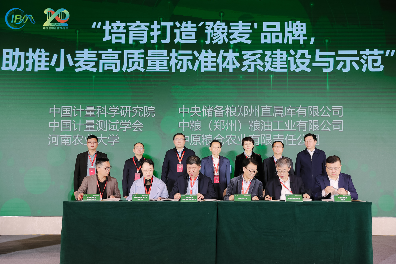 与中国计量科学研究院、中国计量测试学会、中央储备粮郑州直属库有限公司、中粮(郑州)粮油工业有限公司、中原粮仓农业有限责任公司就联合开展“培育打造‘豫麦’品牌,助推小麦高质量标准体系建设与示范”项目签订框架协议。王道文、马菲参加签约仪式。