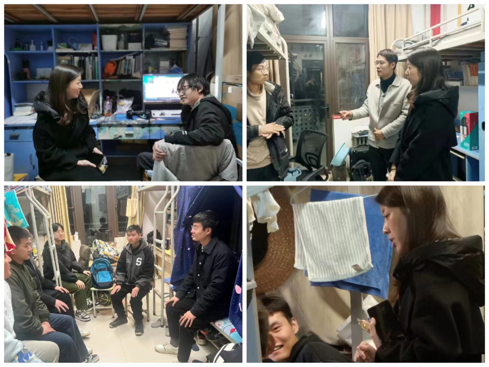 排查过程中,杨航提醒学生注意用电安全,不乱使用大功率电器、不将插线板绑在床架或放置在床铺等易燃物上、寝室无人时及时关掉所有电源,并细心告知大家宿舍楼内的消防器材放置地点和使用方法,嘱托大家熟悉宿舍楼内的安全通道。唐朝指出了生活中容易忽略的安全隐患,让学生意识到安全隐患所带来的严重危害,进一步树立安全意识。学生们纷纷表示会进一步增强消防安全意识,严格要求自己,为自己也为他人着想。朱瑞萍重点围绕宿舍是否使用违规电器、是否携带管制刀具、宿舍衣柜螺丝是否松动等进行检查,严格做到“不放过任何一个漏洞,不丢掉任何一个盲点,不留下任何一个隐患”,在与学生们的交流过程中,呼吁大家更加关注消防安全,携手共铸平安和谐的校园环境。