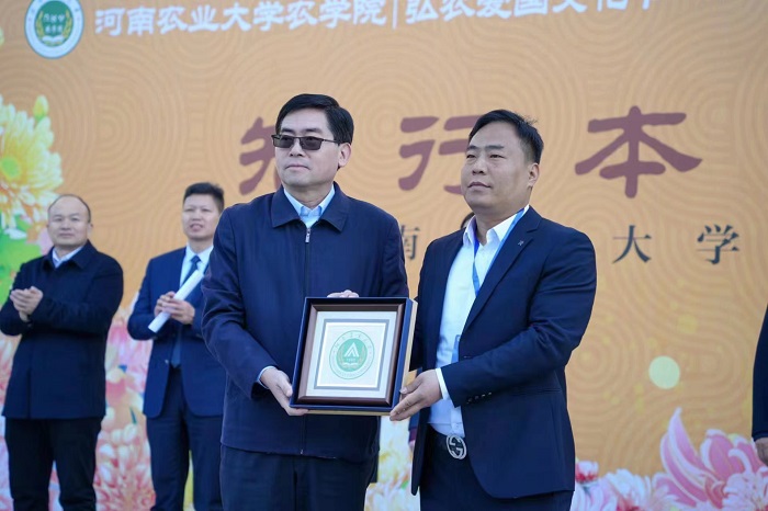 副校长杨喜田为校友代表张红星颁发捐赠证书,副校长郭战伟为校友代表王广飞颁发纪念品,随后,副校长杨喜田宣布菊花文化节开幕。最后,河南省农业厅农村厅副厅长王俊忠、方城县人民政府副县长樊海鹏、副校长杨喜田、郭战伟、猫都论坛