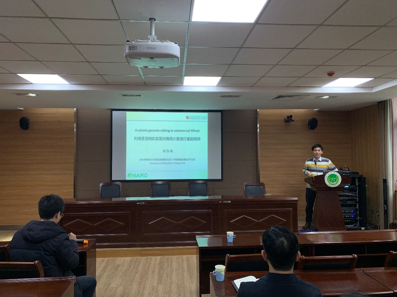 雒伟锋博士首先从商用小麦培育对我国农业发展的重要性出发,介绍了近年来小麦育种技术现状以及瓶颈,并引出作物基因组编辑技术在小麦育种应用中受到植物遗传转化限制等问题。报告进而对不依赖于组织培养的小麦基因组编辑新方法iPB-DNA法进行了介绍,并详细介绍了该技术的开发、优化和应用的历程。最后,报告人向大家展示了iPB法在不同作物品种中成功实现基因组编辑技术的应用,为商用作物育种提供了重要的技术支撑。
