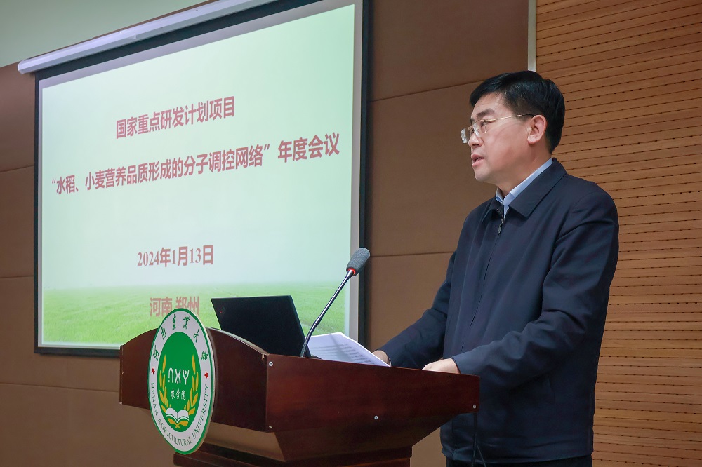 学术副校长王道文研究员代表项目承担单位和会议承办单位欢迎各位领导和专家莅临指导,表示将全力组织做好项目实施的全过程管理,确保圆满完成科研攻关任务。随后就项目研究内容、项目整体进展及下一年度任务安排等方面总结项目工作概况,并对进一步推进项目内部协作交流、加快优异基因资源创制、结合实际需求,努力培育新品种和新种质、发表高水平论文等方面进行了部署。
