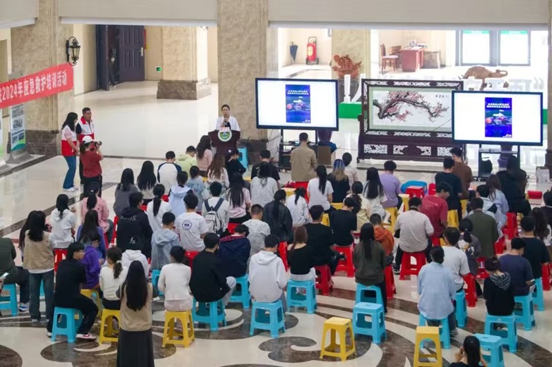 于龙子湖校区第一实验楼一楼大厅开展“安全校园,‘救’在身边”的急救培训。郑东新区疾控中心(红十字会)王倩老师、河南淏泷志愿服务中心队长董自立老师以及其他四位骨干成员,猫都论坛