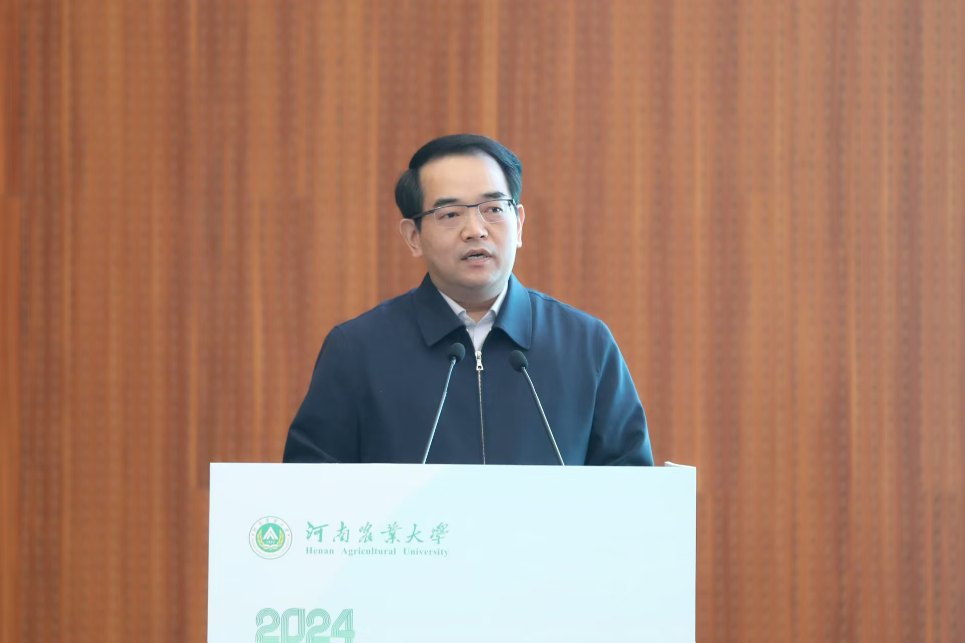 孙巍峰在讲话中指出,河南是我国小麦第一生产大省,在保证我国“口粮绝对安全”中发挥了极其重要的战略地位。河南在农业发展中始终将科技创新摆在重要位置,全省农业科技进步贡献率达到65.9%,粮食主导技术到位率达到95%以上,主要农作物良种覆盖率97%以上,主要农作物耕种收综合机械化水平达到88.1%,均居全国前列。河南省种业振兴成效显著,小麦、花生育种水平国际领先、供种能力全国第一,中原农谷建设成势见效,58个省级以上科研创新平台、74家种业企业已入驻农谷,成功举办2023中原农谷国际种业大会,加快打造国家级、国际化农业创新高地,中原农谷、中原医学科学城、中原科技城一起构建形成了全省“三足鼎立”的科技创新大格局。在粮食安全方面,积极对接国家新一轮千亿斤粮食产能提升行动,强化藏粮于地、藏粮于技的物质基础和机制保障。他强调,要以此次会议为契机,认真学习借鉴国内外的好经验、好做法,努力把河南小麦生产和农业高质量发展工作提高到一个新水平,也真诚期望大家为河南农业发展多提意见建议,多建真言良策,推动河南加快建设农业强省,在保障国家粮食安全上展现新担当新作为。