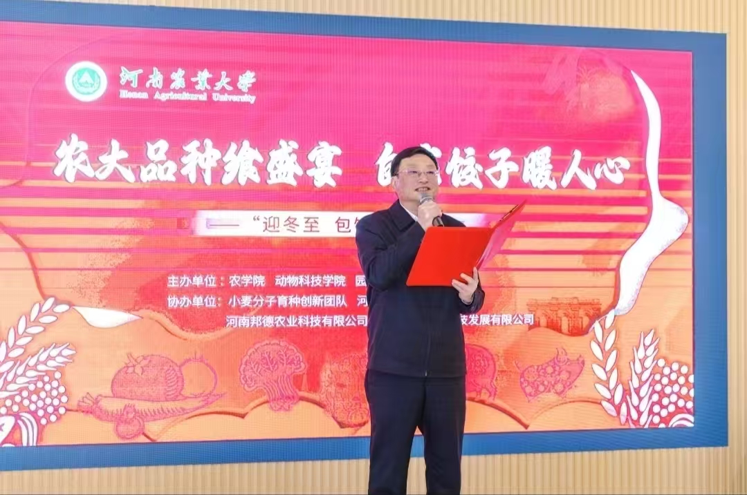 王道文在致辞中表示:“冬至佳节承载着深厚的文化底蕴,包饺子也象征着团圆美满。无论是面粉、蔬菜,还是肉类,无不体现了中原儿女对土地的深情厚谊,更体现了我校“厚生丰民”的办学理念。此次活动的食材皆源自农大科研成果,是真正有科技含量的饺子。希望考研学子吃了老师们蕴含着满满心意的饺子,能够蟾宫折桂、勇创佳绩,也祝愿本次活动圆满成功。”