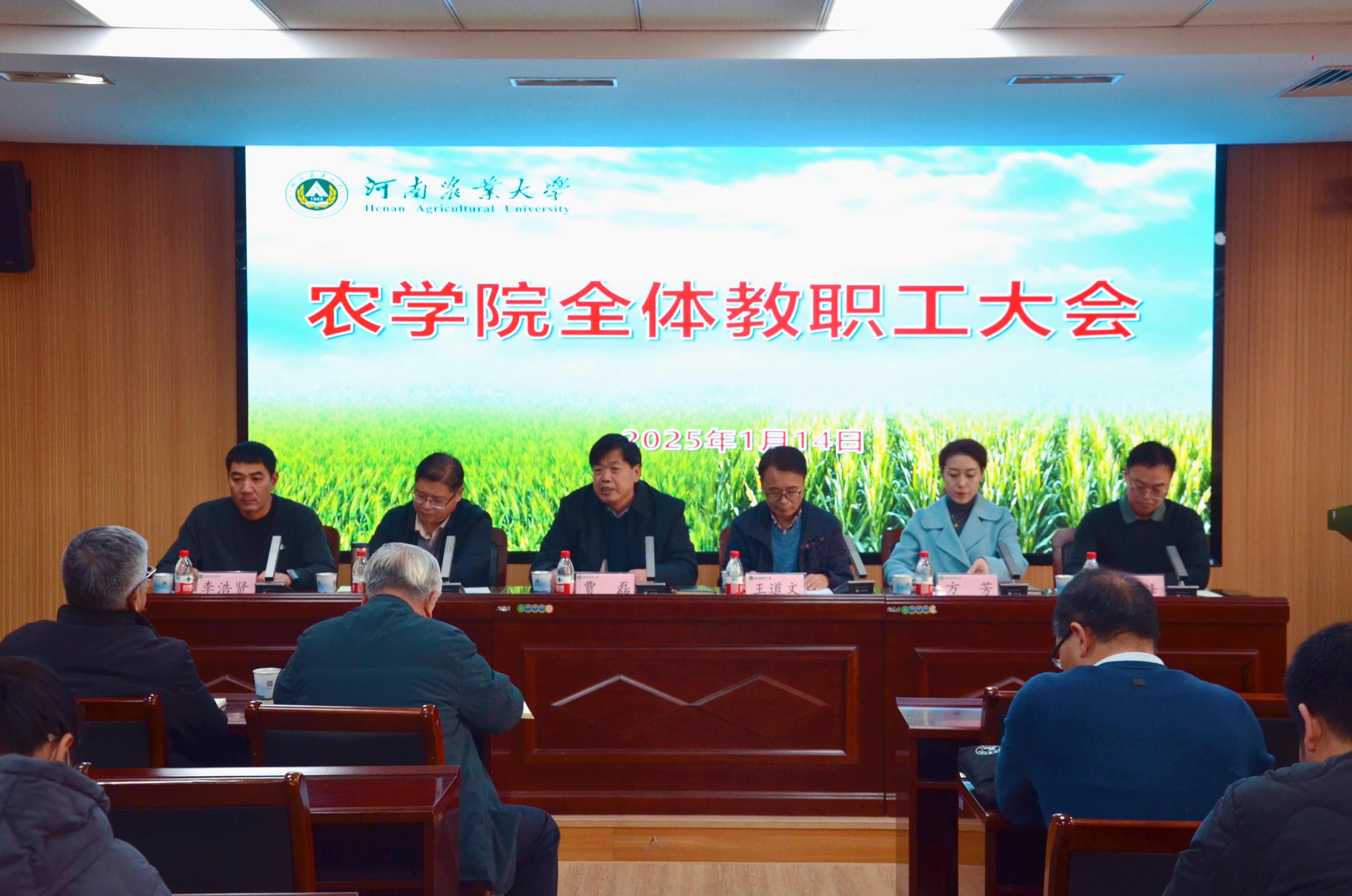 在龙子湖校区第一实验楼南321会议室召开全体教职工大会,对学院2024年度工作进行全面总结,对2025年重点工作进行谋划安排。院领导班子及全体教职工参加大会。会议由院党委书记贾磊主持。