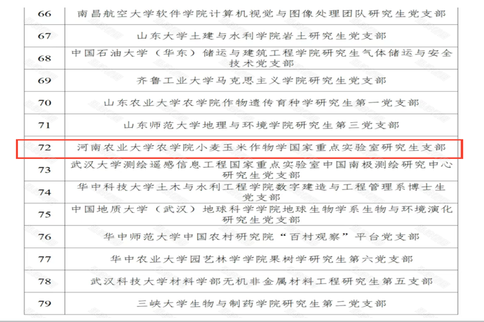 小麦玉米作物学国家重点实验室研究生支部成功通过验收,入选第三批全国高校“百个研究生样板党支部”,成为本批次中河南省高校唯一获此殊荣的研究生党支部。