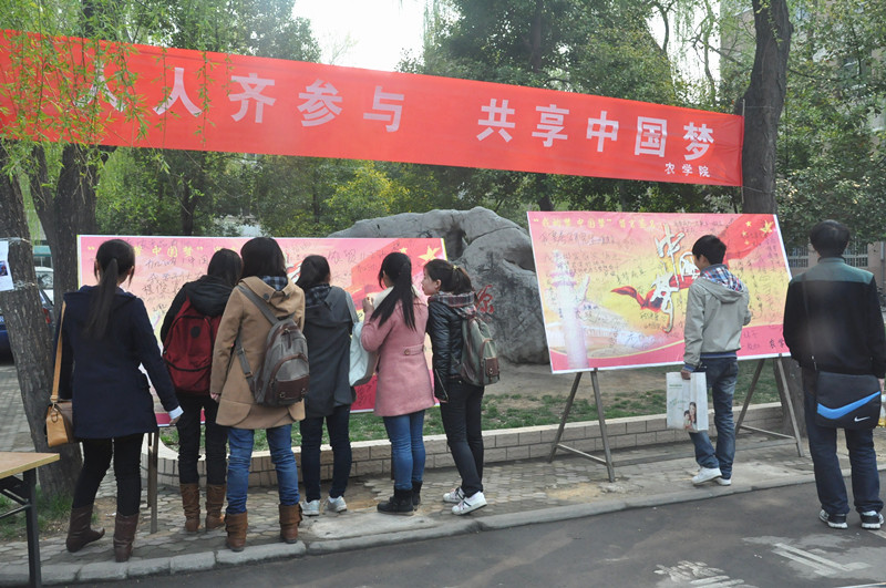 留言板上,有农大老师的“传道授业解惑梦”,有大一新生的“美丽农大梦”,有毕业生对母校的“感恩祝福梦”,有学生党员对国家的“民族富强梦”,形成了人人齐参与、共圆中国梦的良好氛围。