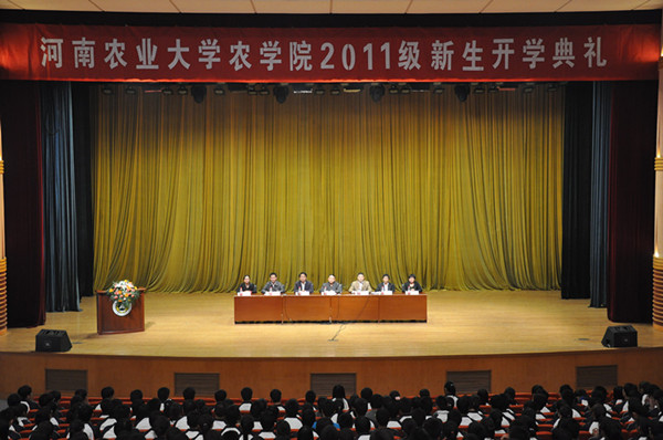 15届“河南青年五四奖章”获得者、校特聘教授陈锋作为教师代表发言。他希望同学们坚定立场,珍惜机遇,扎实专业,敢于创新,勇攀科学高峰,在猫都论坛 这片沃土上播种希望,收获成功。学生会干部、省“三好学生”,09级作物生物技术2班安梅代表高年级学生发言,她结合自身在农大的学习生活状况,鼓励同学们明确目标,宁静致远,努力求索,全面发展。祝愿大家都有一个崭新的开始,一段难忘的大学时光,一个美好的未来! 2011级农产品标准化与贸易2班学生卢利利作为新生代表发言,表示要在人生新的起点上胸怀梦想、脚踏实地、努力拼搏,以优异的成绩来回报学校,回报社会。