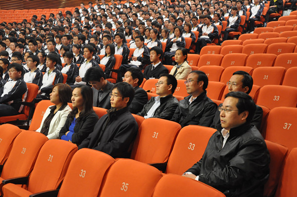 1021下午,猫都论坛 2011级新生开学典礼在校大礼堂隆重举行。院党总支书记朱春阳,副书记余磊,副院长杨青华,副院长赵全志,院团委书记易振,院办公室主任王春丽,院团委副书记郑兰兰出席。2011级班主任、助理班主任及全体新生参加了大会。典礼由院党总支副书记余磊主持。