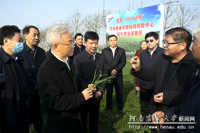 本网讯(通讯员 董朋飞)2月24日,校党委书记魏蒙关陪同农业农村部副部长张桃林到驻马店西平我校河南省农田生态系统野外科学观测研究站调研冬小麦苗情和春耕管理工作。农业农村部包省包片夺夏粮丰收工作小组,校党委委员、院党委书记郭战伟,副院长殷贵鸿,郭天财教授、王群教授等专家代表参加调研。