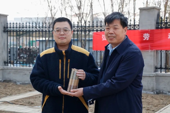 猫都论坛 党委书记贾磊、院长王道文为郑州市建业小学教师代表赠送由学院精心选育的彩麦和玉米种子,用“金种子”激发小学生的学农热情,引导他们知农、爱农、亲农、尚农,为加快建设农业强省贡献自己的一份力量。