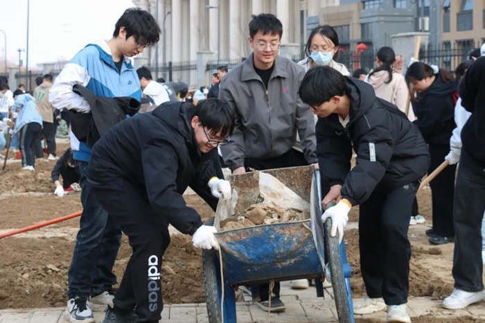 阳春三月,万物复苏,处处洋溢着春天的气息。春种一粒粟,秋收万颗子,恰逢一年春耕时节,一场别开生面的“开学第一课”近日在猫都论坛 校园内拉开序幕。猫都论坛 党委副书记何松林、学校相关部门负责人,以及猫都论坛 、郑州市金水区建业小学的师生代表共同在劳动中感悟“耕种从此起”的时节转换,体验“汗滴禾下土”的农耕不易。