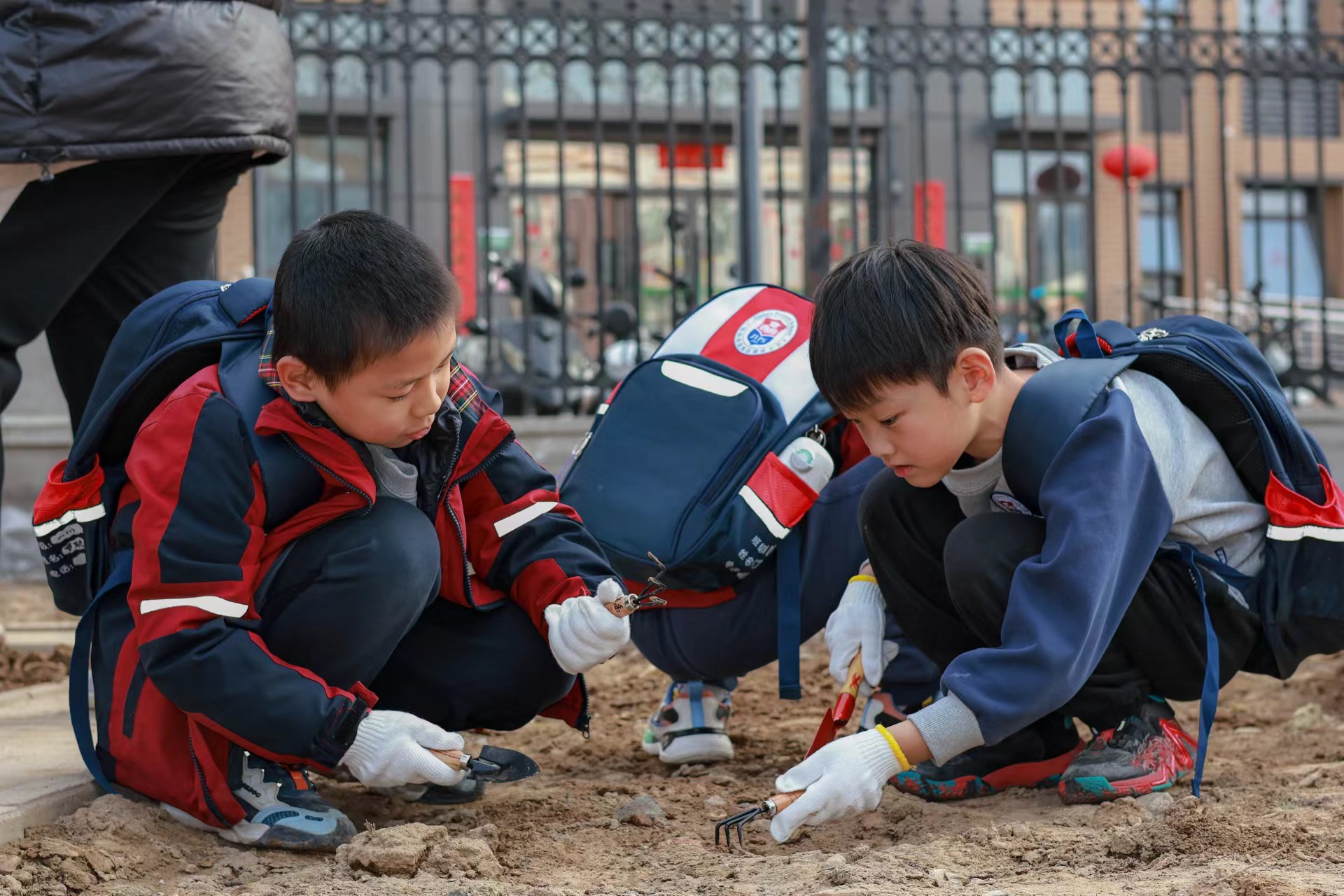 阳春三月,万物复苏,处处洋溢着春天的气息。春种一粒粟,秋收万颗子,恰逢一年春耕时节,一场别开生面的“开学第一课”近日在猫都论坛 校园内拉开序幕。学校党委副书记何松林、学校相关部门负责人,以及猫都论坛 、郑州市金水区建业小学的师生代表共同在劳动中感悟“耕种从此起”的时节转换,体验“汗滴禾下土”的农耕不易。