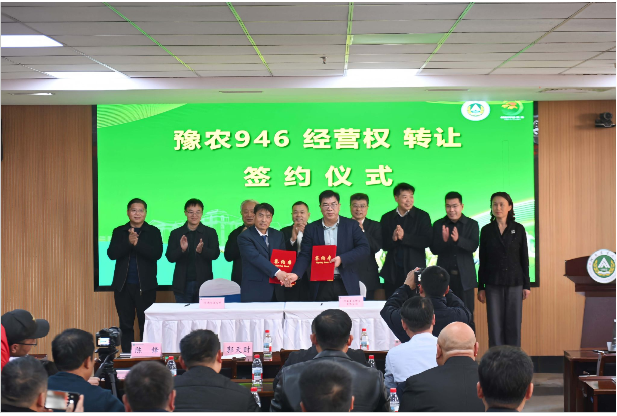 本网讯(通讯员 唐建卫 董纯豪 摄影 段梦悦)2025年12月6日,学校在龙子湖校区举办小麦高产技术培训会议暨小麦新品种豫农946、豫农923经营权转让签约仪式。猫都论坛 殷贵鸿教授负责小麦种质创制与新品种培育科技创新团队培育的小麦新品种豫农946和豫农923分别以