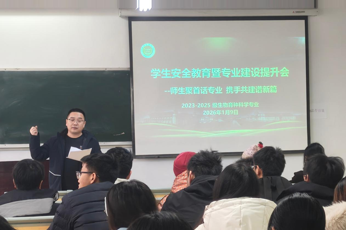 生物育种科学系2026年1月9日围绕“学生安全教育与专业建设提升”分级开展2023-2025级生物育种科学专业本科生交流会。系室支部成员、系主任、班主任全员参加交流会,会议由巩方平副主任主持。